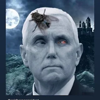Eine dickte Fliege landet auf Pences weißen Haaren, bleibt dort zwei Minuten sitzen, ein Auge des VP ist blutunterlaufen. Der zu erwartende weltweite Meme-Sturm setzt augenblicklich ein.