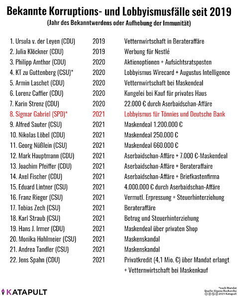 Inzwischen schaffte es Ursula von der Leyen (CDU) ihre mangelhafte Dr.-Arbeit zu retten, obwohl sie nachweislich weite Teile plagiierte, weil rein zufällig ihr Ehemann in der Kommission saß, die den Fall untersuchte. Ich zähle sie aber dennoch als 17:1.